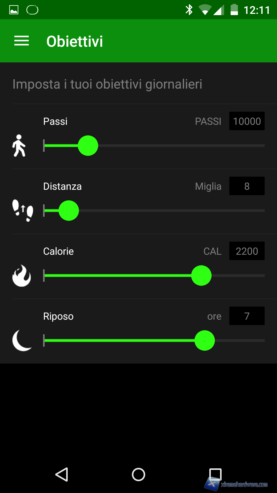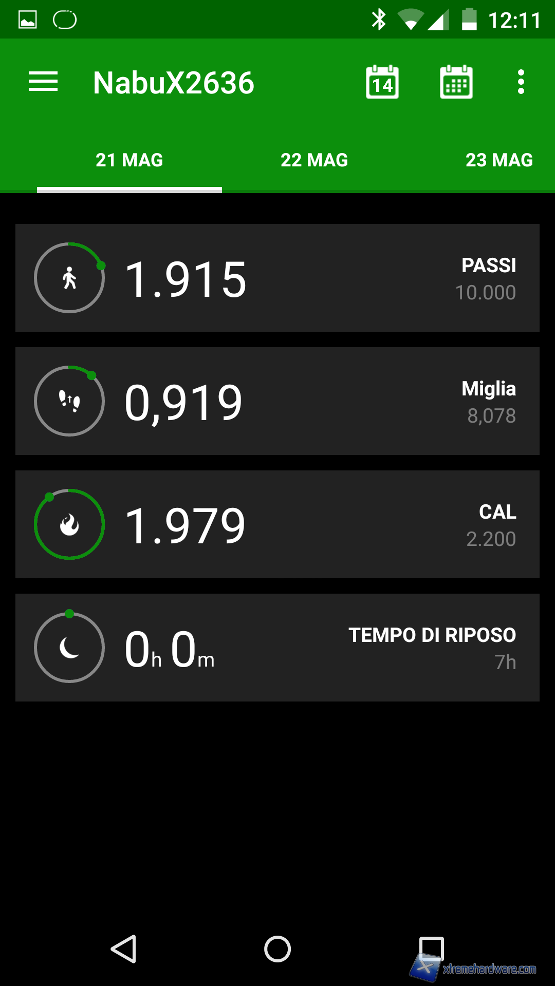 L’altra app che scaricheremo una volta registrato il nostro Nabu X è ‘’Nabu Fitness’’ una sorta di agenda che terrà traccia dei nostri progressi giornalieri. Tramite l’app potremo innanzitutto settare gli obiettivi giornalieri monitorando i passi, le calorie, i Km percorsi ed infine il tempo di riposo. L’app è dotata anch’essa di un’interfaccia semplice e facilmente comprensibile, offrendo funzionalità simili a molti fitness tracker in commercio.