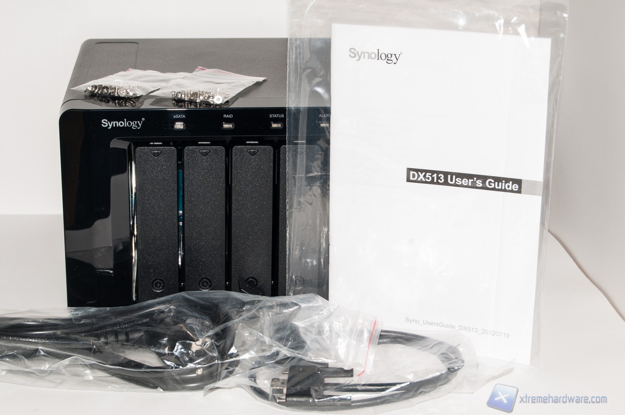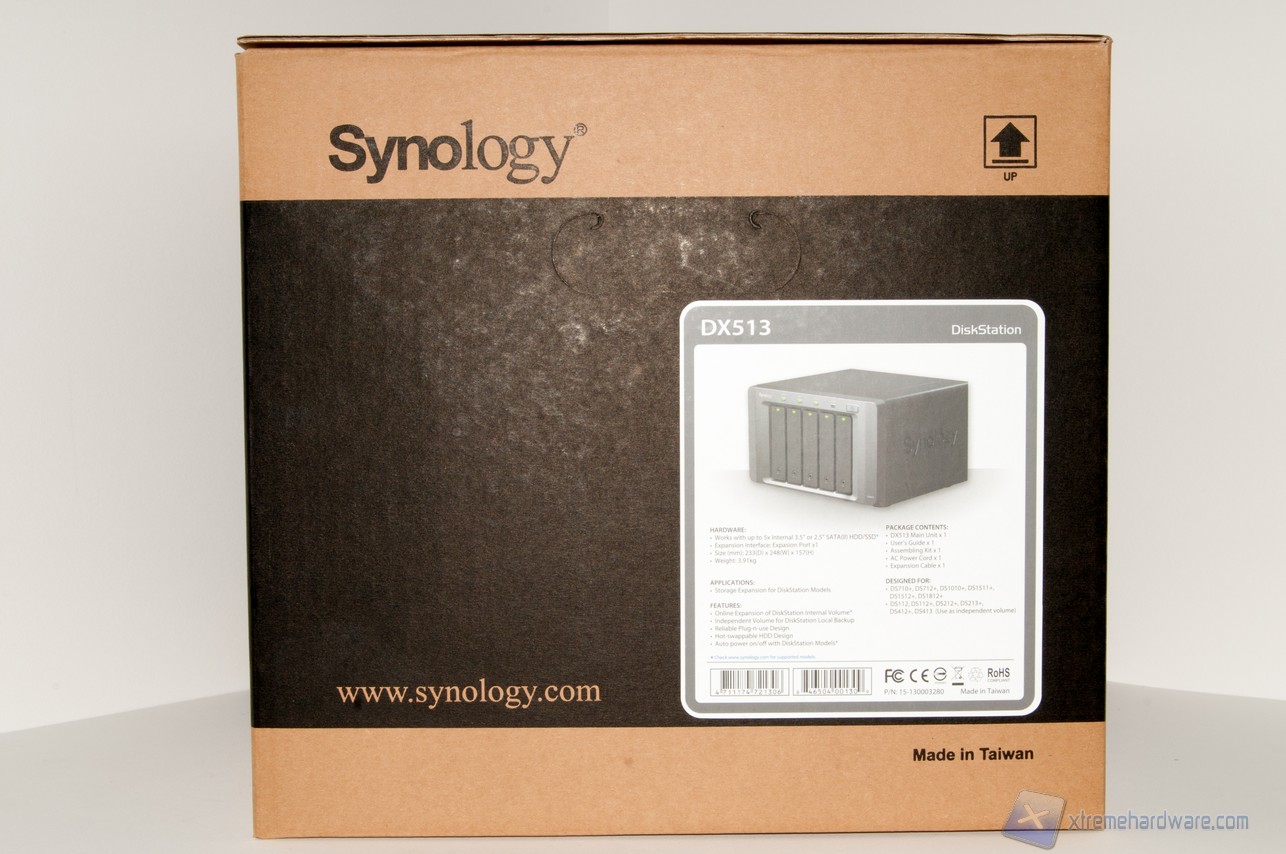 La confezione del Synology DX513 è identica a quella vista qualche pagina addietro per quanto riguarda il DS1513+.
